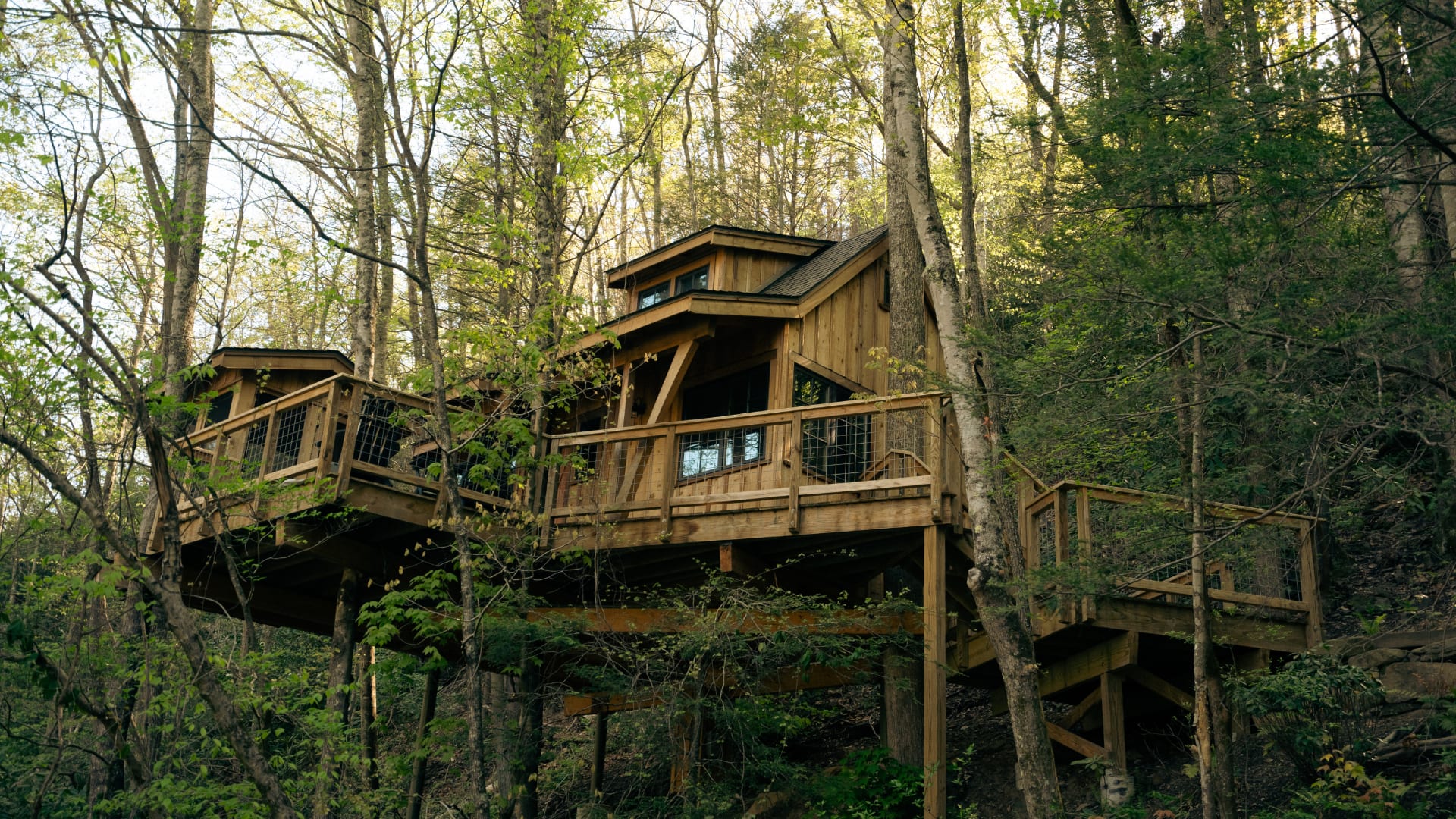 Ascend the staircase to reach The Dogwood, our tallest treehouse in the grove! Watch over the forests from your private deck’s seating and take in scenic views of the Smoky Mountains. Inside, you can enjoy year-round comforts, including heating & air, a kitchenette, private bathroom, TV with streaming and cozy bedding. Spend the day exploring The Great Smoky Mountains National Park and end the day dining at delicious restaurants along Gatlinburg’s Parkway, both 15 mins. away!