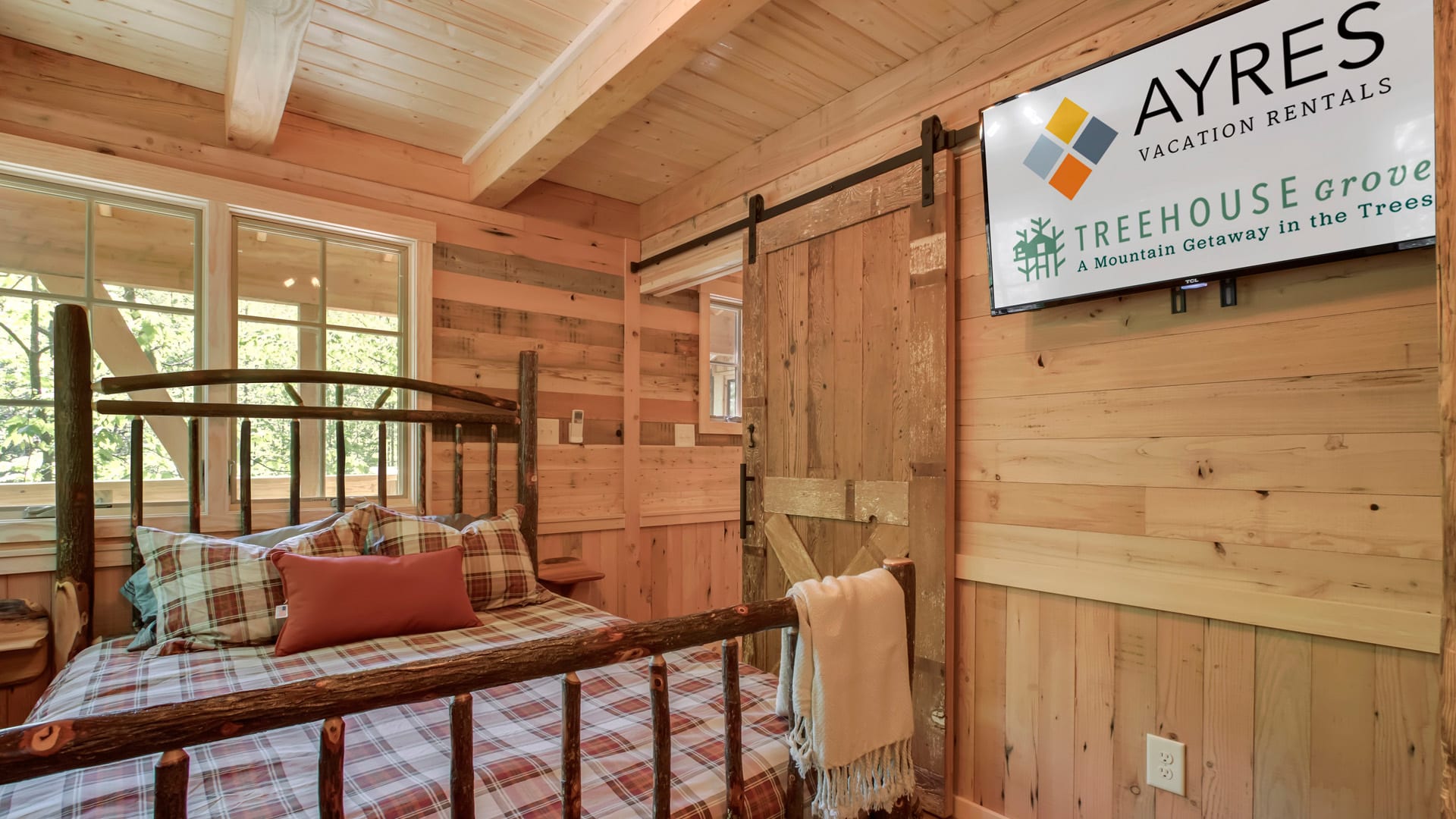 Located 5-minutes from the National Park entrance, this authentic “Treehouse Masters” 2-bedroom, 1-bathroom retreat offers unparalleled forest views, heated/cooled lounging spaces, and peak escapism. Skip the Gatlinburg traffic – head straight to the mountains. After exploring, relax by our babbling creek, cook dinner at the community grills, or gather around the firepit. Inside, enjoy rustic wood interiors, a rainfall shower, and comfy queen beds. A nature-first escape for the true adventurer.