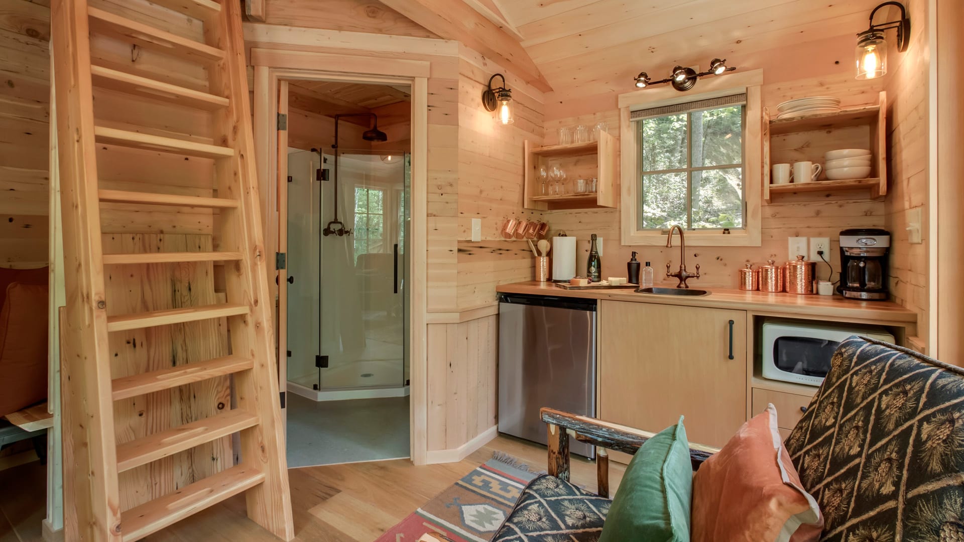 Take a break from your routine and escape to the Smoky Mountains! The Elm treehouse, built and designed by “Treehouse Master” Pete Nelson, is more than a stay; it’s an unrivaled experience. Guests are encouraged to utilize the nearby grills, swings, and firepits; plus, enjoy the babbling creek! This treehouse embraces the “cabin in the woods” aesthetic with towering trees and wood details. Stay among the trees or explore downtown Gatlinburg, only 15 mins. away!