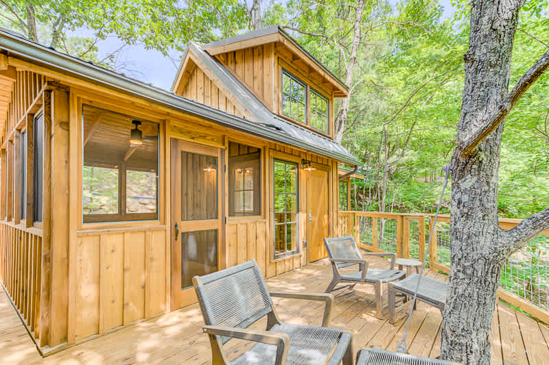 Nestled high among the forests of the Smoky Mountains, The Green Ash: Bark offers a truly unique escape. Spend your mornings waking up to birdsong and whispers of the wind while sipping a fresh cup of coffee on your shared deck, taking in stunning views.