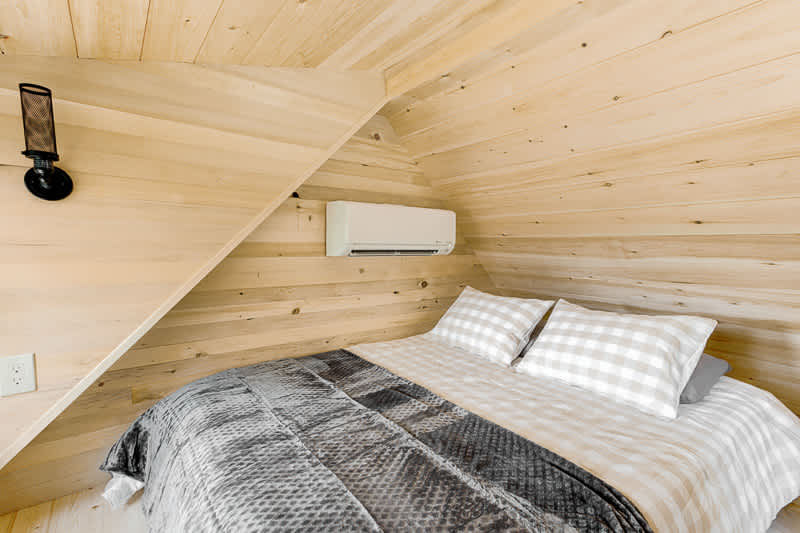 Upon arrival, you’ll have access to the community parking spots right out front. You’ll access your treehouse via a straight pathway with a singular step. You’ll then find your suite on the platform deck; it should be clearly marked on the treehouse pod above the doorway. On the main level is a bedroom with a queen bed. You’ll also see your coffee station, full bathroom with a walk-in shower, ladder to loft, and door to the main-floor bedroom. Located above, there is a loft accessed by a ladder and fit with a queen bed. On the shared platform, you’ll have access to a shared firepit and chairs. You’ll also have access to the shared, covered dining porch.