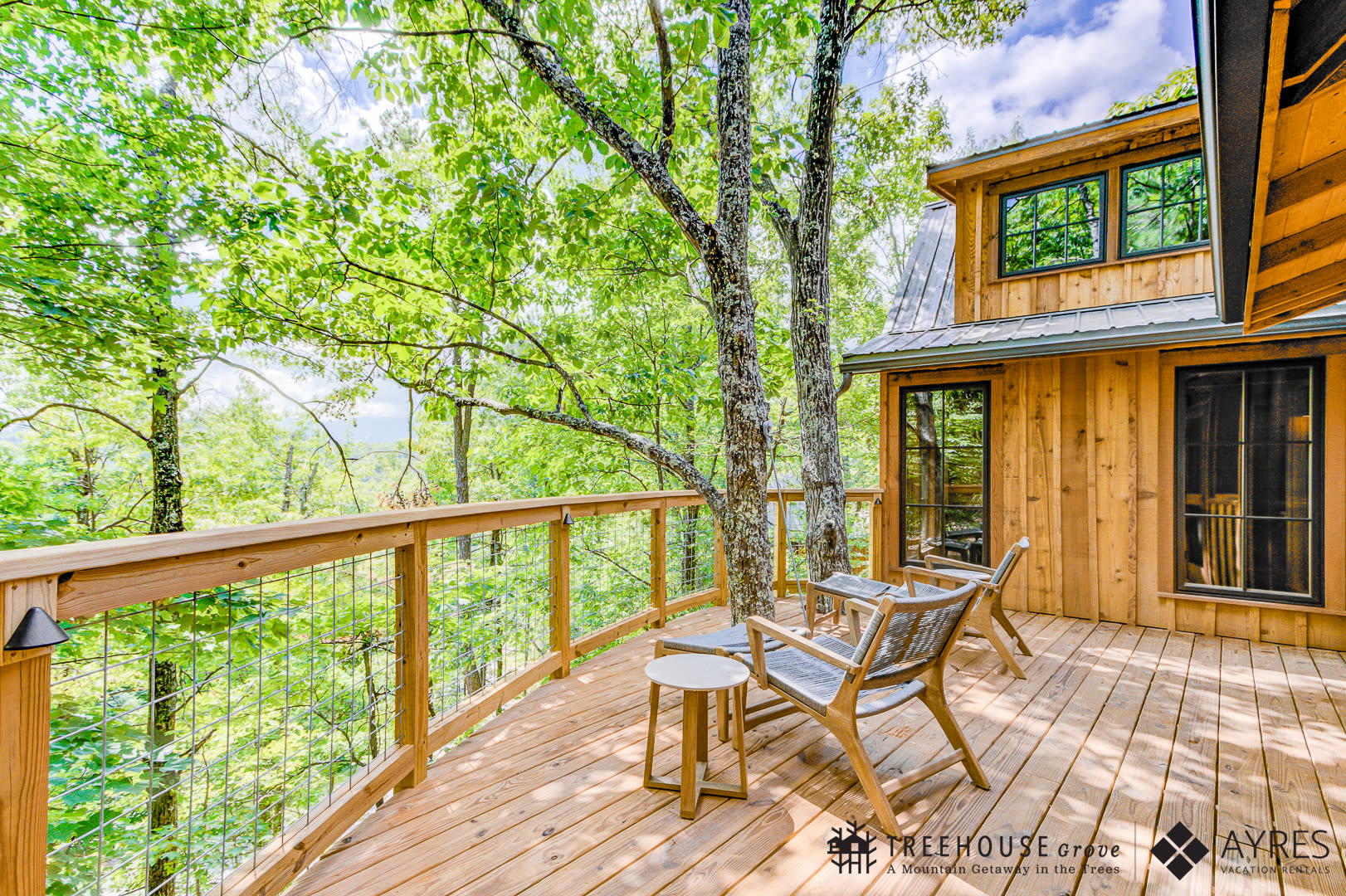 Welcome to the Green Ash treehouse—a stunning and immersive experience in the heart of Gatlinburg, designed by Pete Nelson, the “Treehouse Master.” Perfectly situated within a scenic treehouse community, this one-of-a-kind retreat blends luxury and rustic craftsmanship with unparalleled access to nature. Here, you can soak up breathtaking views from a spacious deck, enjoy community amenities like grills, outdoor pizza ovens, hot tubs, and firepits, or venture into nearby downtown Gatlinburg to explore local attractions.