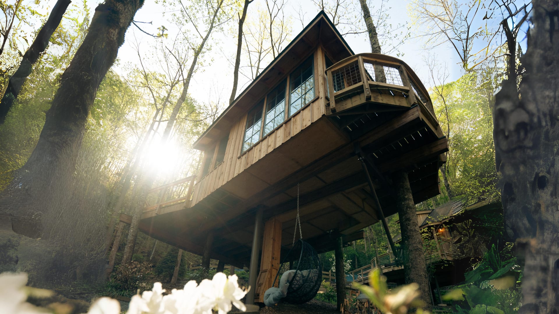 Experience the refreshment of nature at The Hemlock, a unique treehouse nestled in the heart of the Smoky Mountains. As part of Treehouse Grove, Gatlinburg’s original treehouse resort, this one-of-a-kind design offers easy entry (no steps!), stunning views of the Smoky Mountains’ forests & Norton Creek, and resort amenities like picnic domes! Enjoy easy access to downtown Gatlinburg, which is only 15 mins. away, while avoiding the hustle & bustle – something you’ll only get at Treehouse Grove!