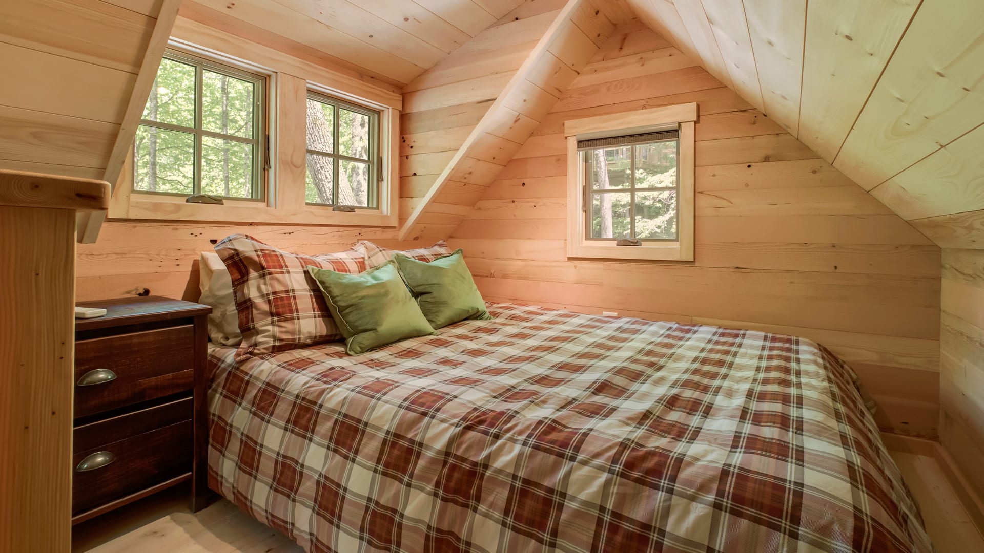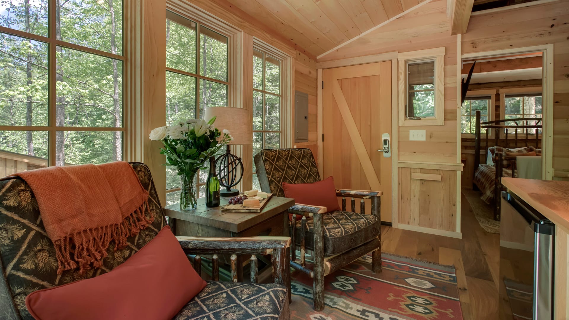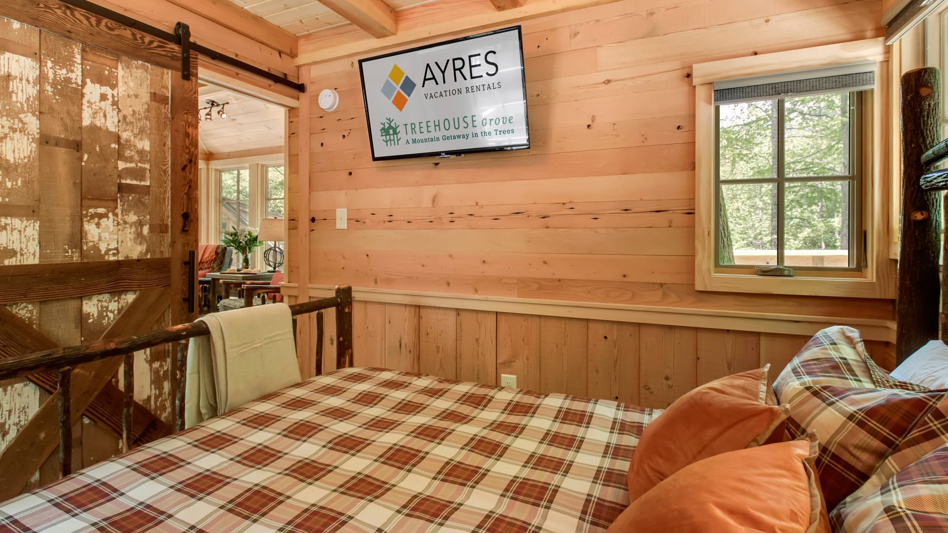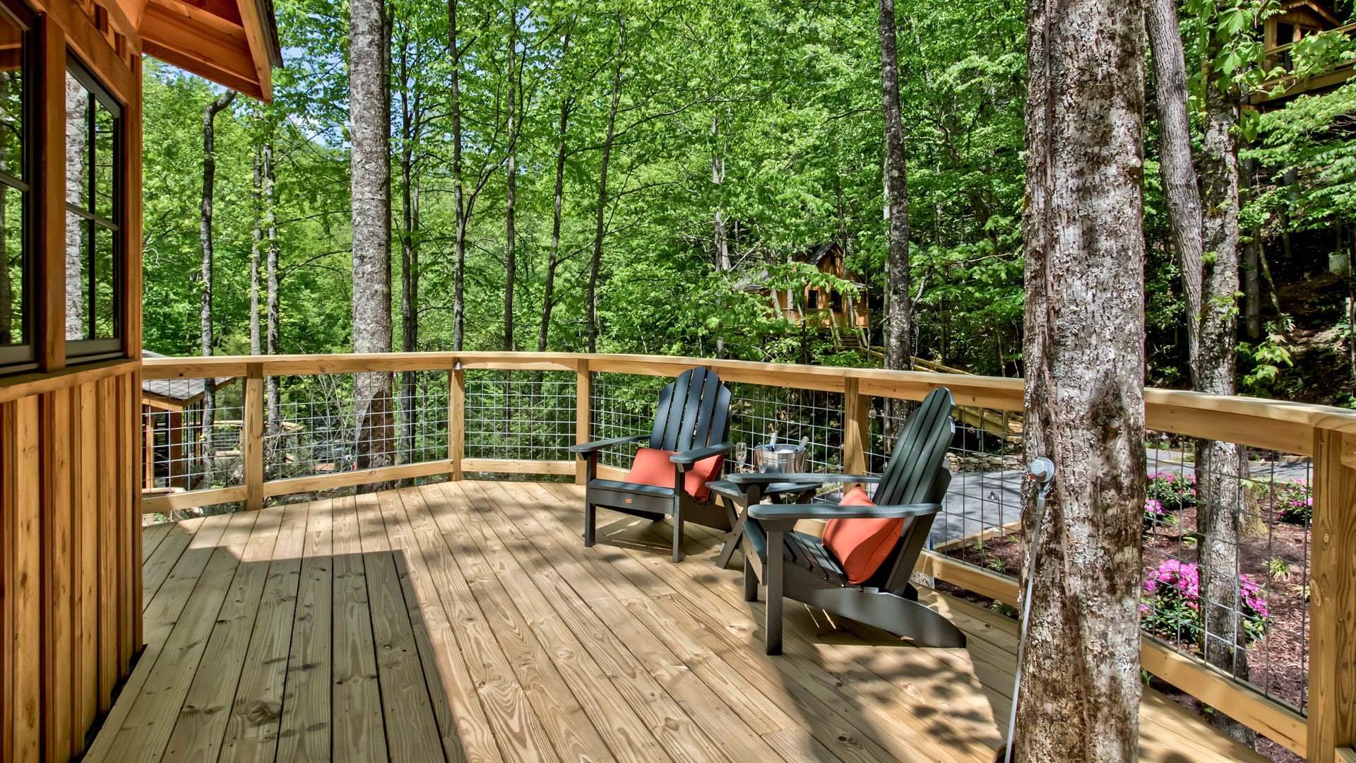 Go green in the Smokies! This “Treehouse Masters” 2-bed, 1-bath eco-escape is a nature-first sanctuary. Nestled by a babbling creek just 5 minutes from the National Park entrance, it’s the ultimate sustainable getaway. Breathe mountain air from your private deck or relax in rustic, natural-wood interiors. With a rainfall shower and year-round air-conditioning/heat, you’ll enjoy modern comfort that honors the environment. Sway and grow with the trees. Rejuvenate where the forest meets luxury.