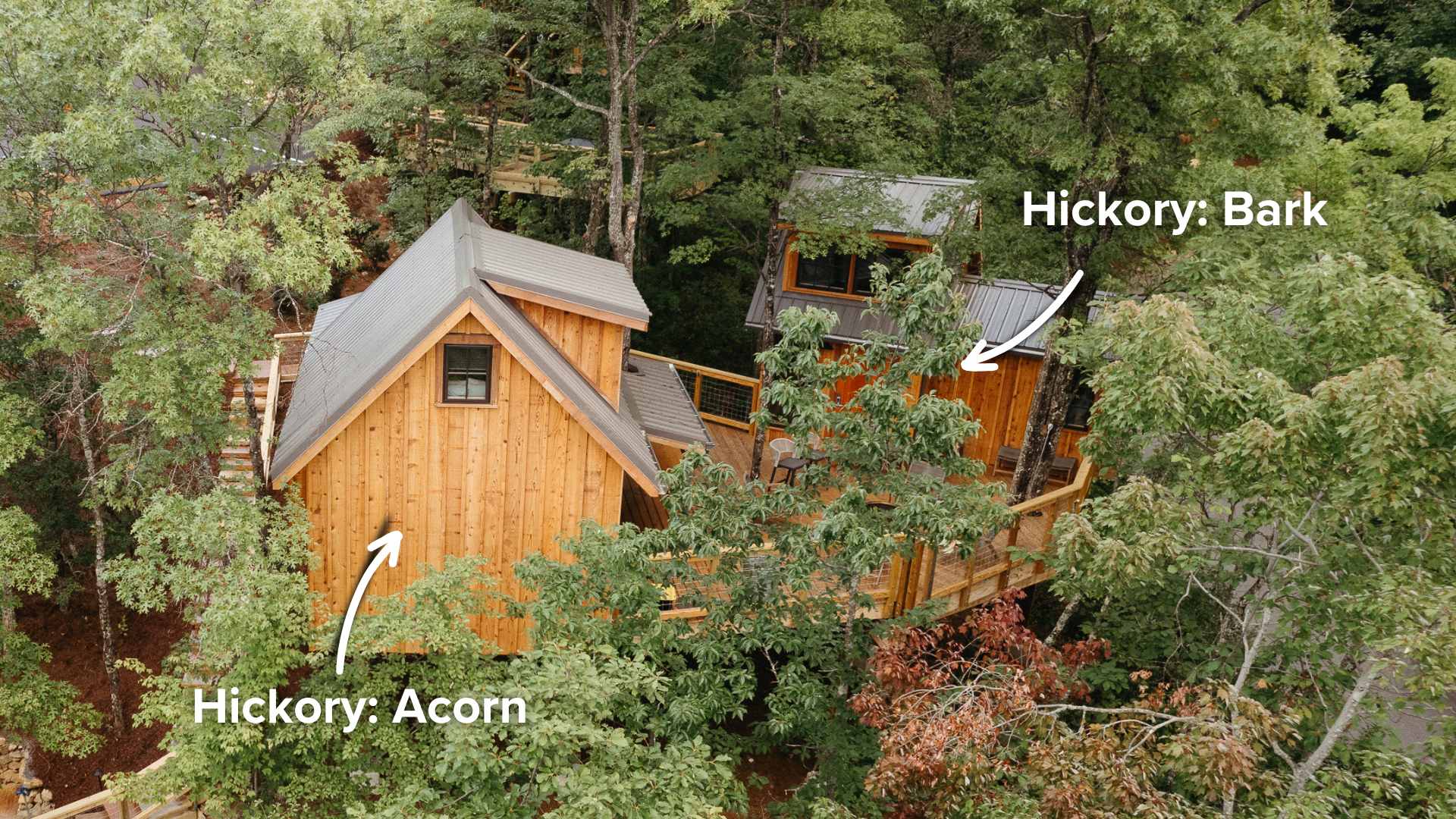 Treehouse Grove is a treehouse resort designed and built by the “Treehouse Master,” Pete Nelson. Known for its large platform deck and unobstructed views, this is ideal for anyone wanting to reconnect. This room sleeps up to 4 guests and has a shared platform with a firepit. It upholds the amenities you’ve become accustomed to such as high-speed Wi-Fi, a bathroom fit with a shower, heating and cooling, hot tub access, and, of course, your favorite streaming channels! Adults Only – Unplug at The Hickory: Bark.