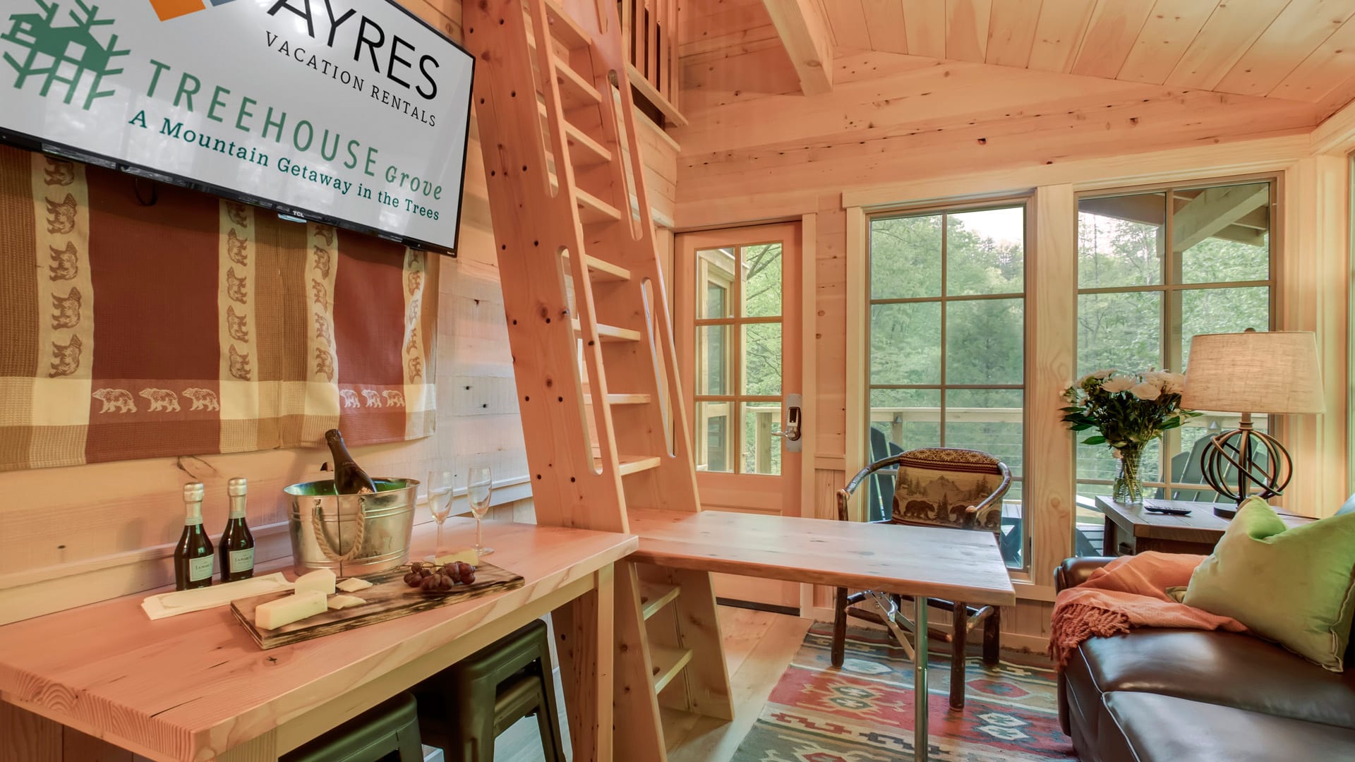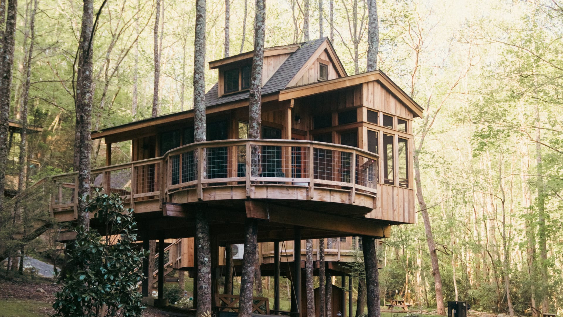 Escape to the forest of the Smoky Mountains in this cozy, serene treehouse, The Magnolia. Inside Treehouse Grove, Gatlinburg’s first treehouse resort, you’ll find 16 of Pete Nelson’s one-of-a-kind treehouses. The Magnolia was made for peaceful getaways and relaxation. Perched in the trees next to a top-rated trout fishing creek, you’ll wake up to sunlight and the babbling creek – something you’ll only experience in nature. Stay in nature, yet be close to downtown Gatlinburg – only 15 mins. away.