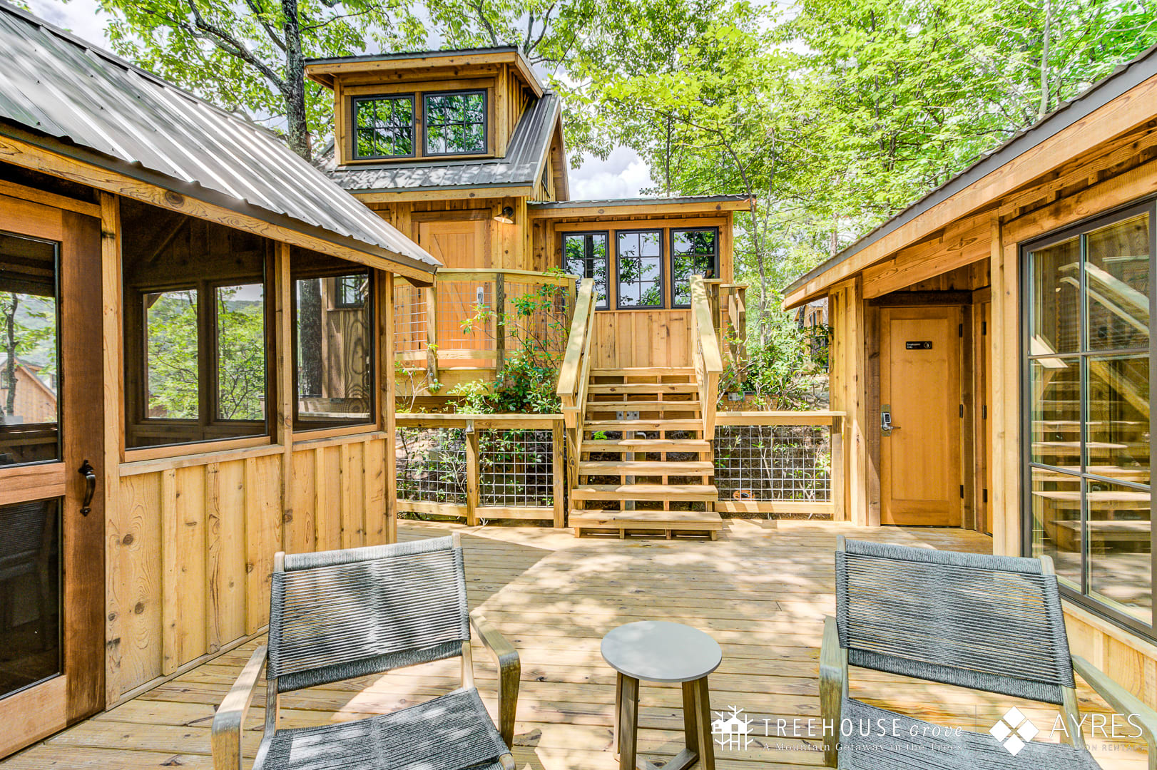 You will be sharing the platform, firepits, chairs, covered dining porch, and resort amenities with other guests. If you prefer to have a more private stay, we suggest looking into booking “The Mulberry;” with that, you’ll claim both pods who share your platform. However, you will still be sharing access to resort amenities such as hot tubs, grills, and firepits. We do offer more secluded, private treehouses aside from “The Mulberry,” as well. Please view our other listings – we'd love to host you!