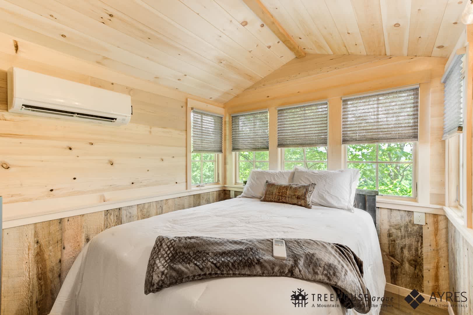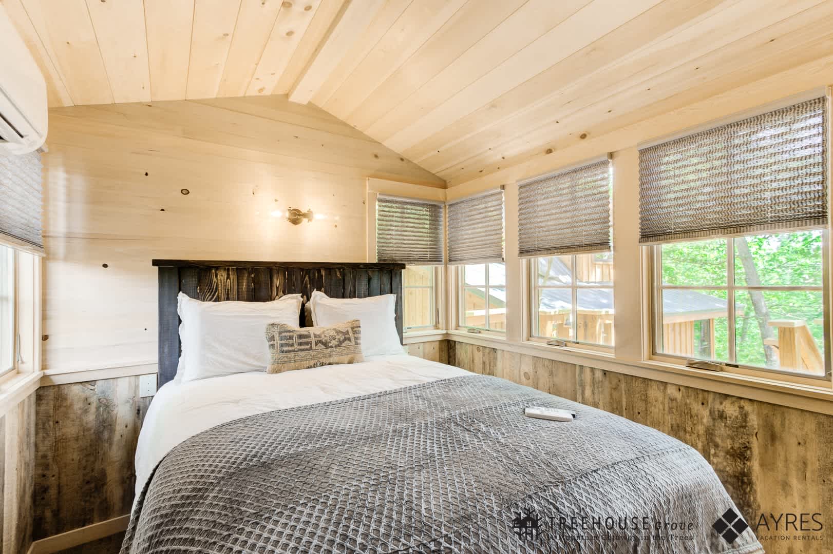 Spend the day how you like: taking in the views from your deck while reminiscing over a fire, reading a book in bed or making a quick dinner using the outdoor pizza oven! This treehouse is an intimate space that’s ready for your cozy getaway. Enjoy all that The Mulberry: Bark has to offer and book today!