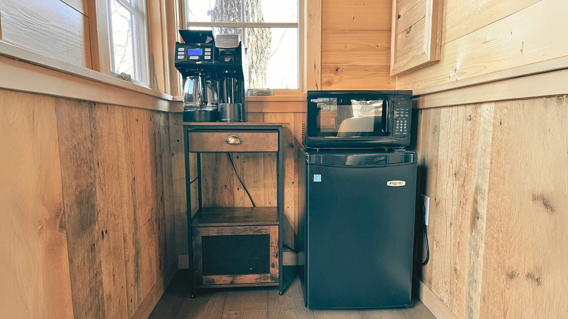 - Main Level: 1 Queen Bed, 1 Private Bathroom with a Walk-In Shower, and 1 Coffee Station with a Mini-Fridge & Coffee Machine (Eco-friendly, disposable utensils & plates included!)