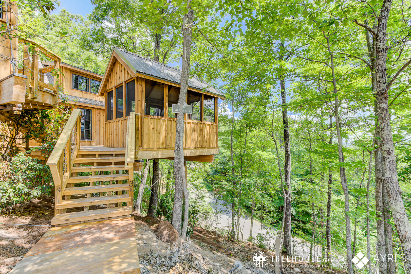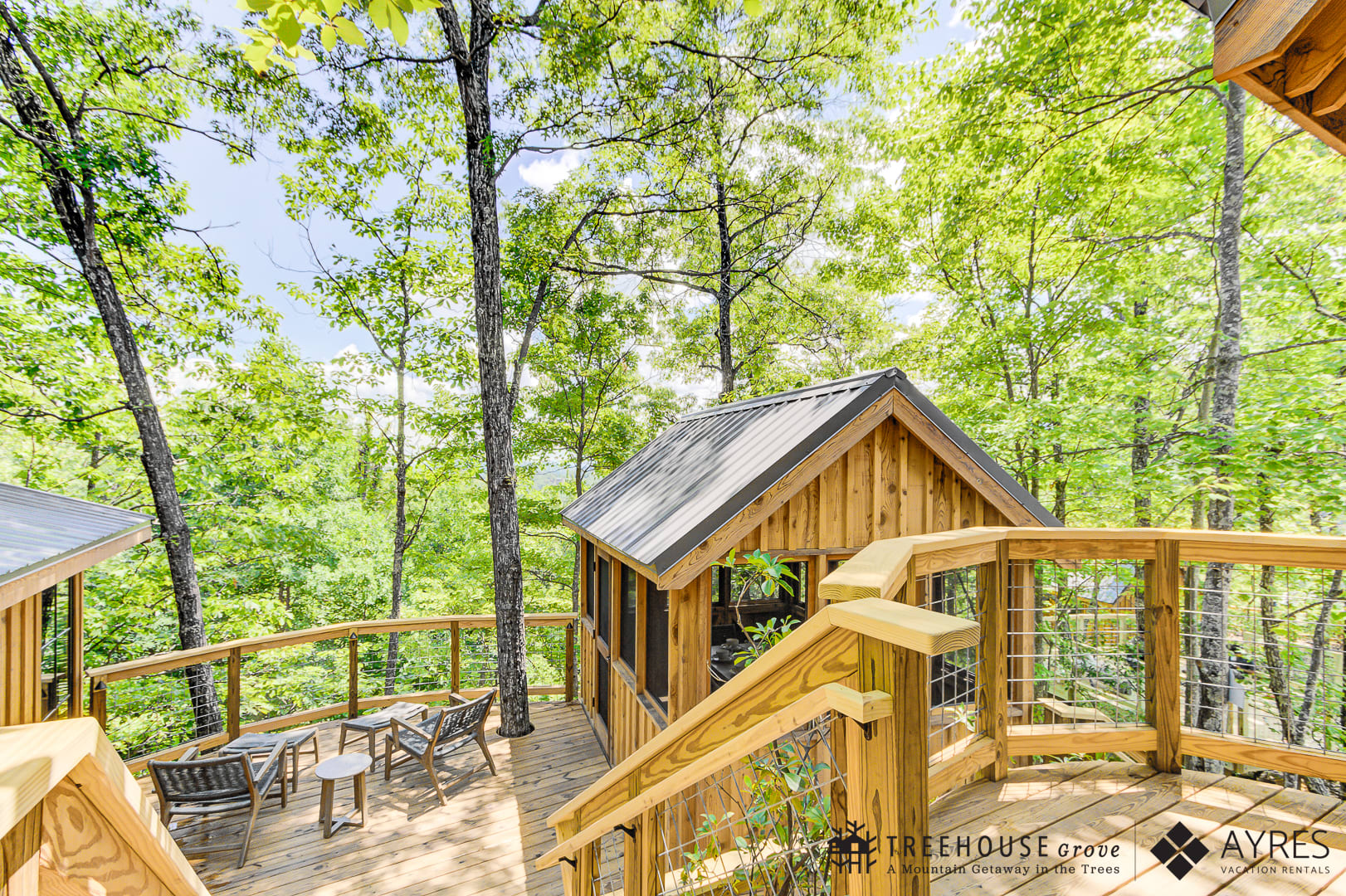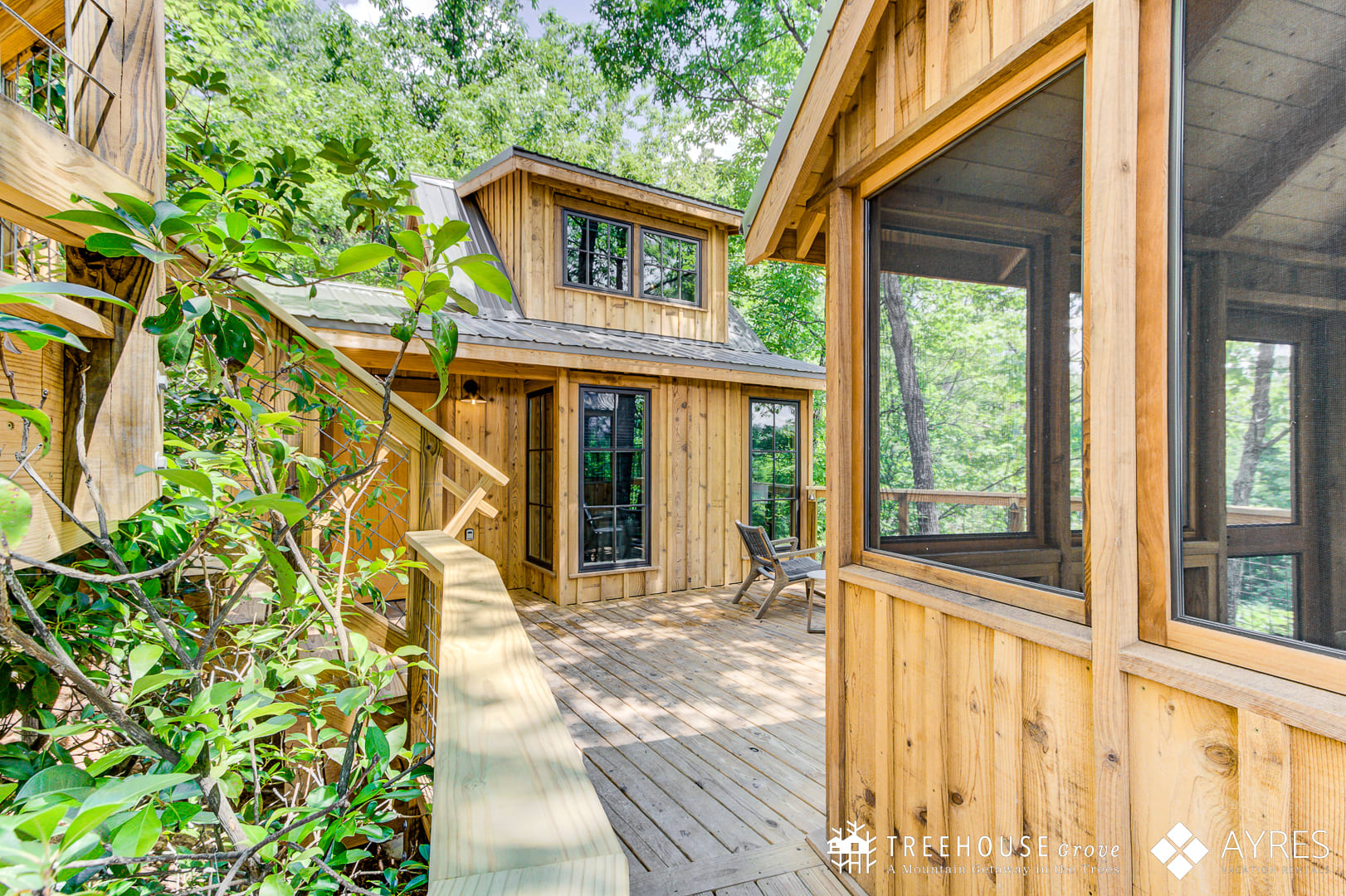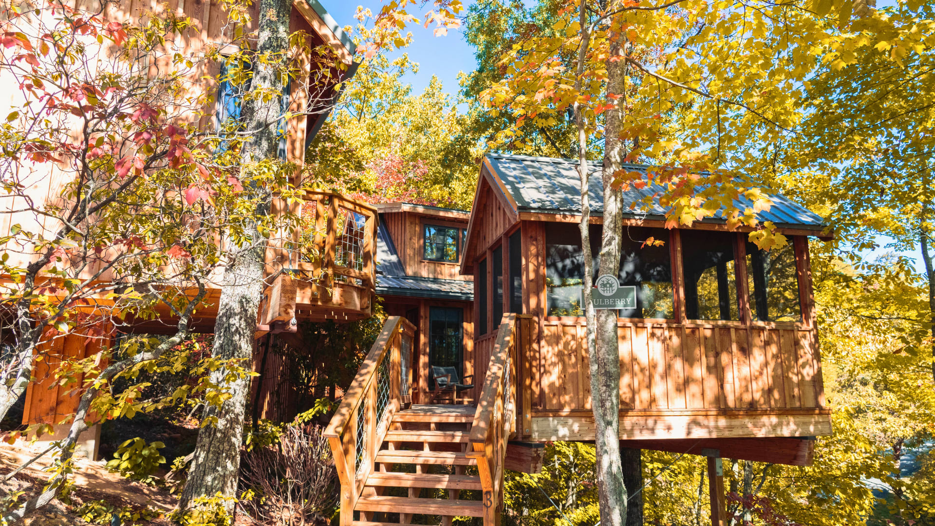 Discover the unique charm of the Mulberry Treehouse, the first dual-level treehouse at Treehouse Grove. Crafted with expert design and unparalleled attention to detail, the Mulberry offers a luxurious escape nestled in the treetops of Gatlinburg, Tennessee. From its handcrafted wood finishes to its spacious layout, this treehouse is designed to connect you with nature while providing all the comforts of a modern retreat.