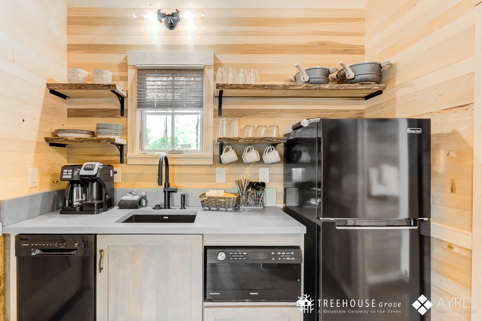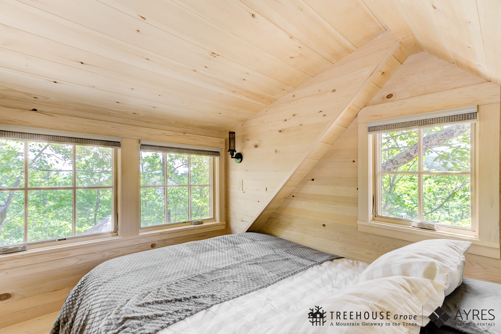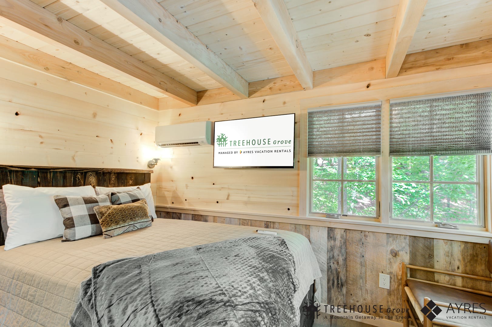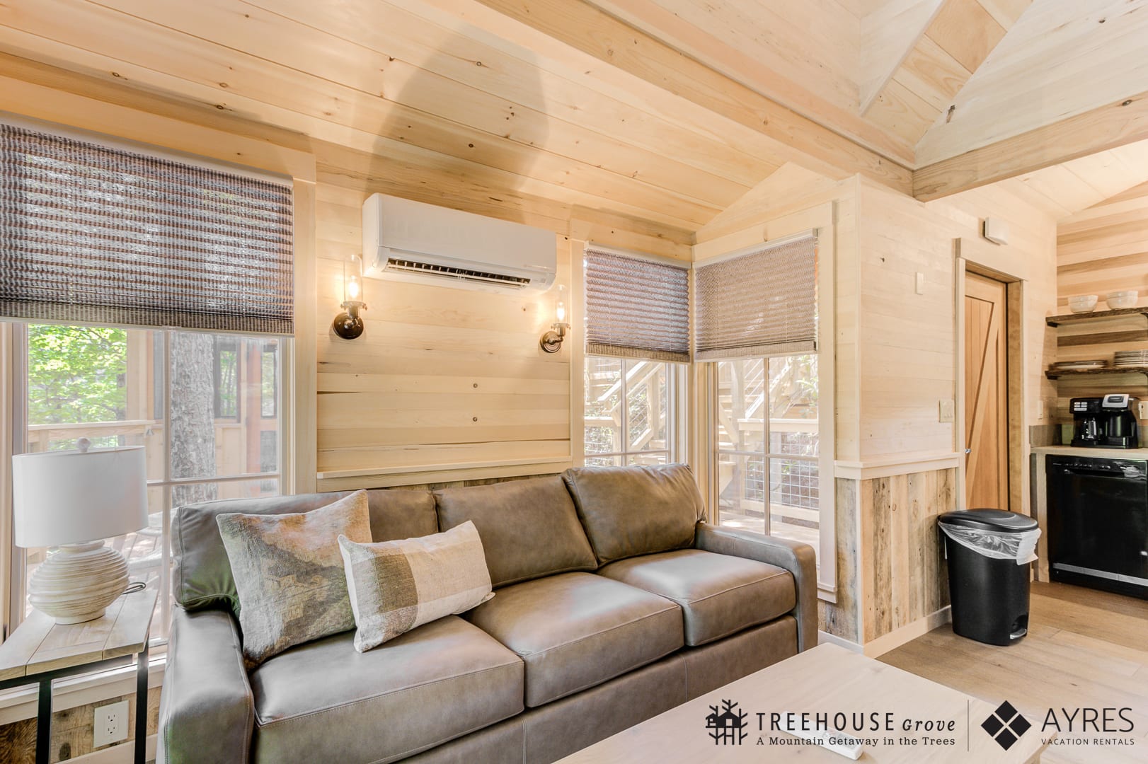Discover the unique charm of the Mulberry Treehouse, the first dual-level treehouse at Treehouse Grove. Crafted with expert design and unparalleled attention to detail, the Mulberry offers a luxurious escape nestled in the treetops of Gatlinburg, Tennessee. From its handcrafted wood finishes to its spacious layout, this treehouse is designed to connect you with nature while providing all the comforts of a modern retreat.